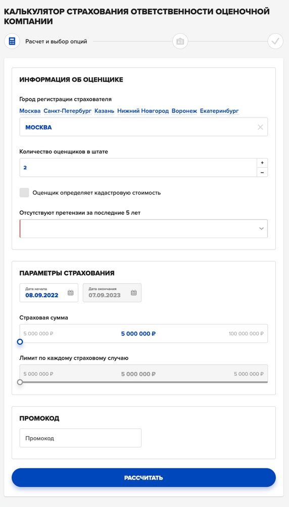 Для расчета стоимости договора страхования воспользуйтесь онлайн-калькулятором, доступным по ссылке