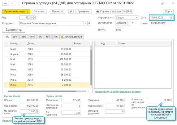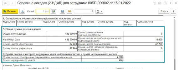 В программе «1С:Бухгалтерия 8» начиная с версии 3.0.106.60 c 01.01.2022 внесены изменения в справку о доходах (2-НДФЛ) для сотрудников.