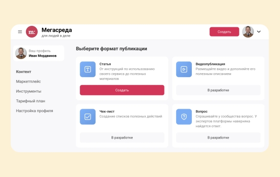 Мегастудия — это панель управления, на которой есть всё для работы на платформе.