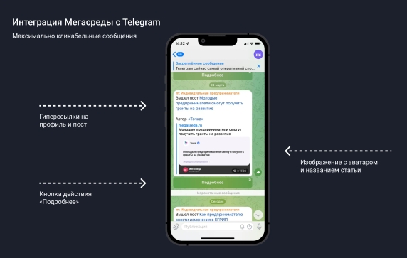 Мы знаем, что у нас есть пользователи, которые публикуют посты здесь и потом выкладывают их в свой Telegram-канал. Мы внимательно изучили все ваши кейсы и создали бота, который поможет автоматизировать публикации статей из Мегасреды в ваш личный Telegram.
