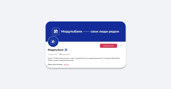 Банк для предпринимателей, который напоминает об отчётности и налогах, публикует лайфхаки для бизнеса и разбирает обновления законодательства, влияющие на работу предпринимателей.