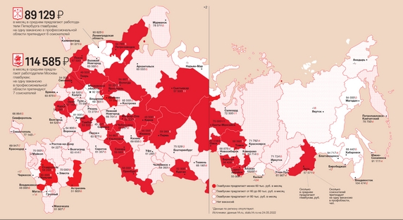 Рекрутинговый портал, совместно с Росстат опубликовали карту заработной платы бухгалтеров по регионам России. Наибольшая зарплата у столичных специалистов - 114 585 руб.. В Санкт-Петербурге размер ниже - 89 129 руб.