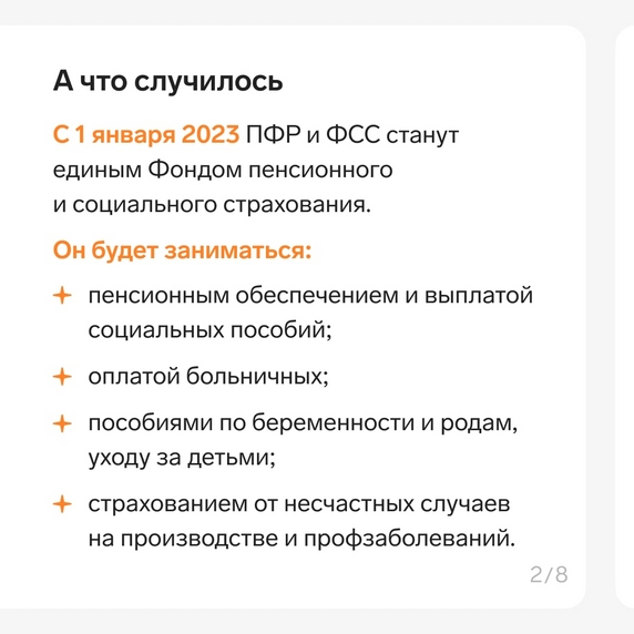 14 июля приняли пакет законов об объединении Пенсионного фонда и Фонда социального страхования. Эксперты Контур.Экстерна рассказали в карточках, как это повлияет на страховые взносы и отчетность. Полный обзор всех важных изменений читайте в статье 🖇