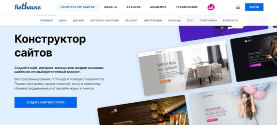 Если хотите быстро создать сайт на нетхаусе с нуля, достаточно выбрать шаблон, добавить разные блоки — например, со списком услуг, каталогом, контактами, галереей и отзывами, — загрузить тексты, а затем настроить меню, шрифты, кнопки. Сервис предлагает более 100 готовых шаблонов.