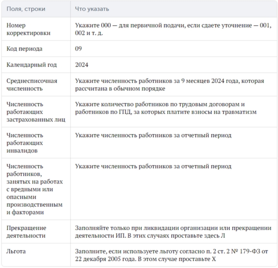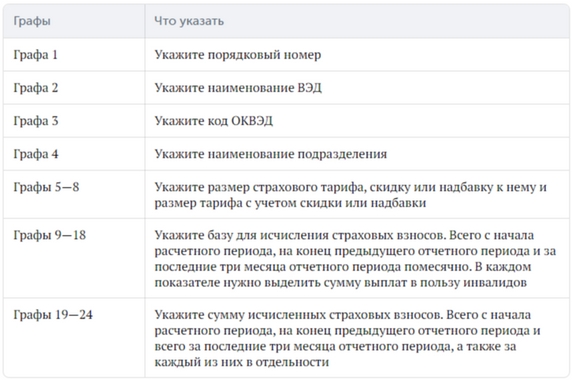 Что нужно указать в графах каждой строки ― показали в таблице.
