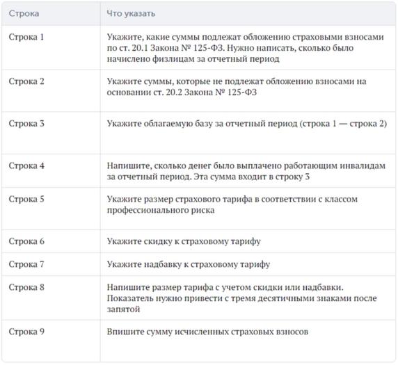 Размер страхового тарифа может измениться, тогда сумму перерасчета страховых взносов отразите в строке 9 в графе, которая соответствует месяцу, когда получили уведомление о новом размере тарифа.
