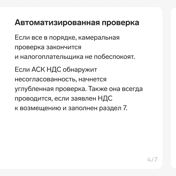 Эксперты сервиса Контур.НДС+ рассказали в карточках, как проходит проверка. О том, что сделать, чтобы проверка прошла удачно и без вопросов со стороны налоговой, читайте в статье 🖇