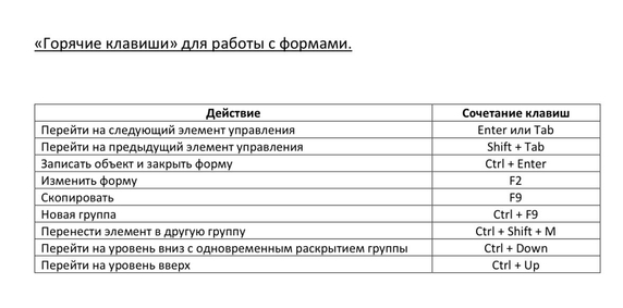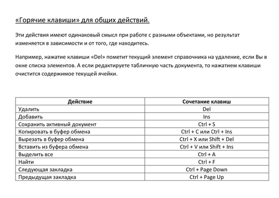 Для повышения скорости работы в программах «1С» существуют «горячие клавиши».