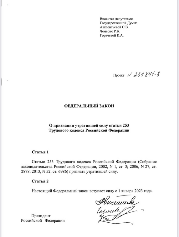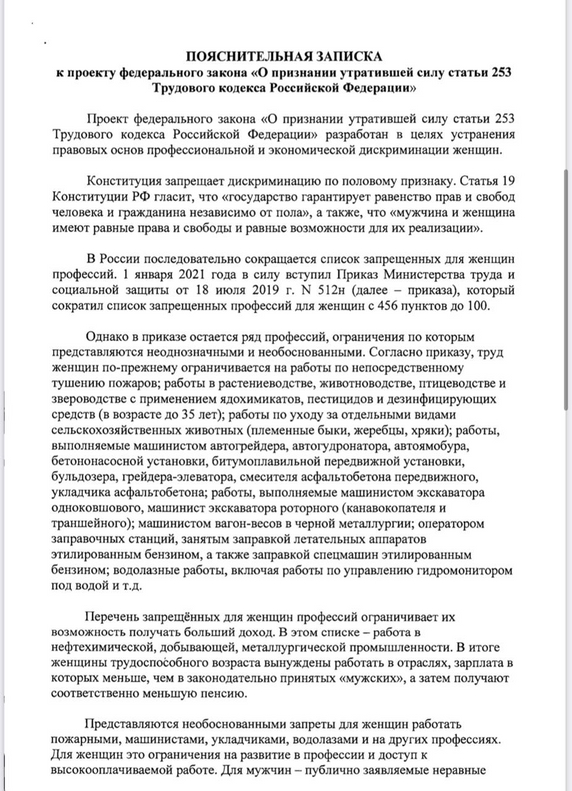 На рассмотрение в Госдуму внесен законопроект, предлагающий отменить все ограничения на применение женского труда.