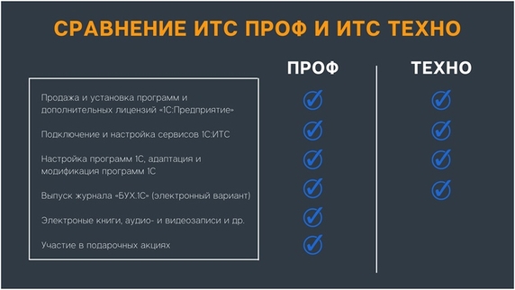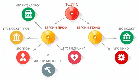 5) ИТС ТЕХНО (для обеспечения официальной поддержки программных продуктов «1С:Предприятие»ПРОФ версий для коммерческих предприятий). Отличия от ИТС ПРОФ: