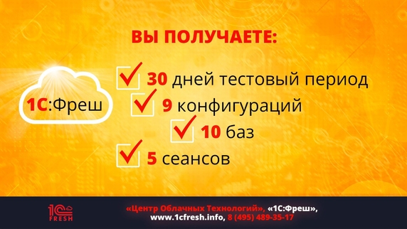"1С:Фреш" - это универсальный облачный комплекс для работы с сервисами «1С» через Интернет.