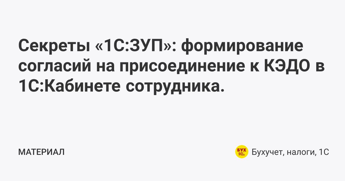 Секреты «1С:ЗУП»: формирование согласий на присоединение к КЭДО в 1С:Кабинете сотрудника.