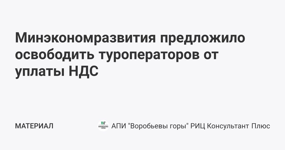 Минэкономразвития предложило освободить туроператоров от уплаты НДС