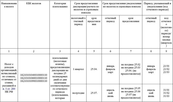 – сроки подачи уведомления об исчисленных суммах по отчетным периодам;