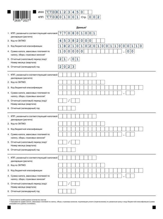 Пример уведомления об исчисленных налогах и взносах для зачета ЕНП в 2023 году