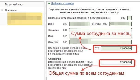 В нем предоставляются сведения: ФИО, ИНН, СНИЛС и к ним добавляется сумма начисленной зарплаты/вознаграждения за месяц, как облагаемой, так и необлагаемой страховыми взносами.