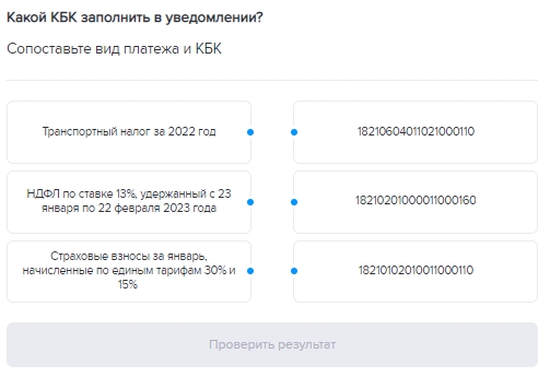 2. Разберитесь, какие КБК и отчетные периоды отразить в уведомлении.
