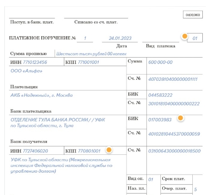 Способ 1. Заполнить платежку по единому шаблону