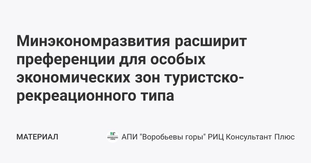 Минэкономразвития расширит преференции для особых экономических зон туристско-рекреационного типа