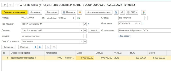 Как работает счет на продажу основных средств в 1С: Бухгалтерии 8