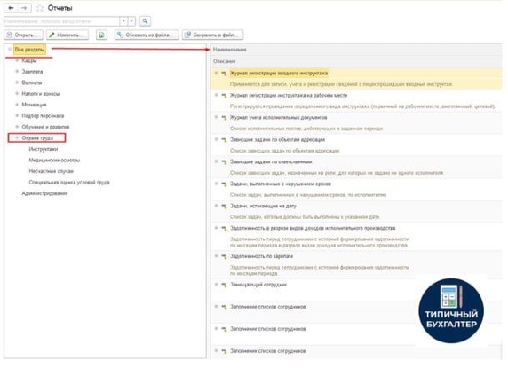 В открывшемся окне слева будет иерархическое содержание всех разделов. Справа отчеты, относящиеся к том или иному разделу. Раскрыв иерархию можно детализироваться до конечных разделов или задать наименование отчета в поисковой строке.