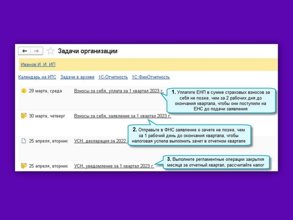 Самое новое в «1С»: уменьшение налога УСН на страховые взносы ИП за себя до наступления сроков их уплаты