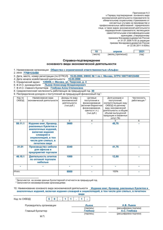 Справка-подтверждение основного вида деятельности