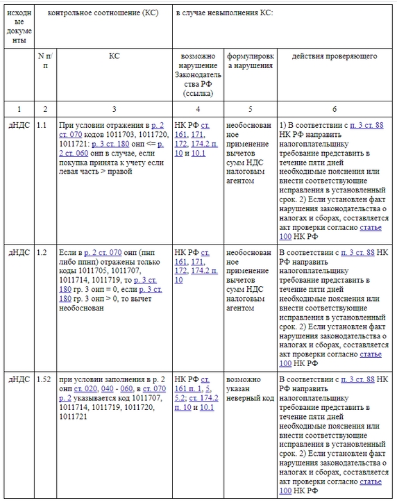 Приложение с контрольными соотношениями выглядит так: