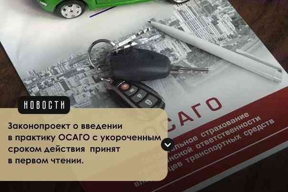 Законопроект о введении в практику ОСАГО использования полиса с укороченным сроком действия от одного месяца до года принят в первом чтении.