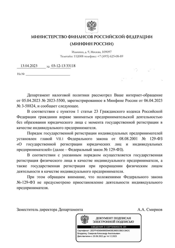 Об этом Минфин дал разъяснения в Письме от 13.04.2023г. № 03-12-13/33118