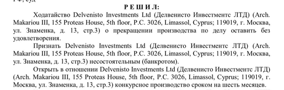 АСГМ разрешил банкротить Кипрскую компанию в России