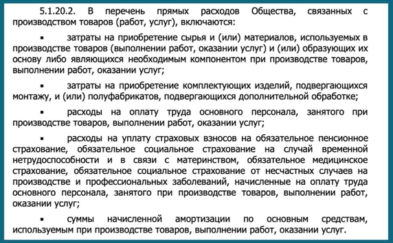 Как правило, в учетной налоговой политике компании закрепляют только прямые расходы, предусмотреные в ст.318 НК РФ (как на скрине), а налоговые органы успешно доказывают, что те не правы и перечень прямых расходов значительно шире.
