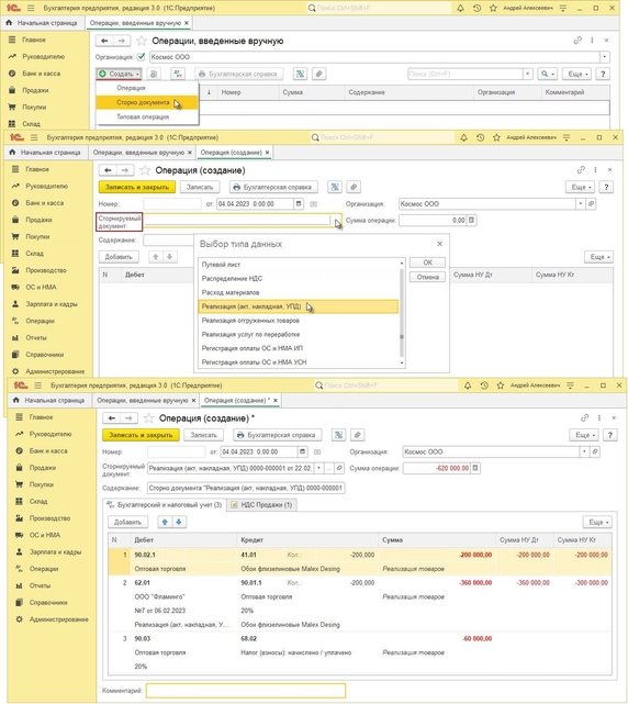 - Вид операции "Сторно документа".