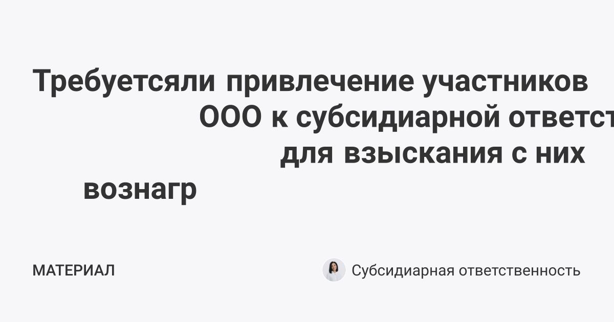Требуется ли привлечение участников ООО к субсидиарной ответственности для взыскания с них вознаграждения арбитражного управляющего?