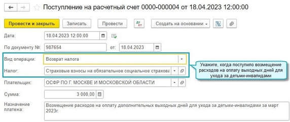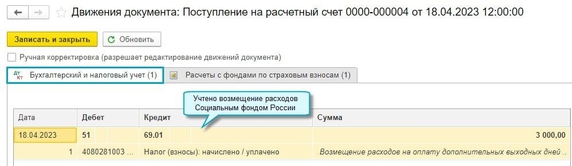 В программе «1С:Бухгалтерия 8» начиная с версии 3.0.136 добавлена возможность учитывать поступление из Социального фонда России возмещения расходов на оплату дополнительных выходных дней для ухода за детьми-инвалидами, на выплату пособия на погребение, на финансирование предупредительных мер по сокращению производственного травматизма и других расходов.
