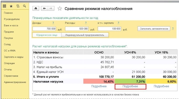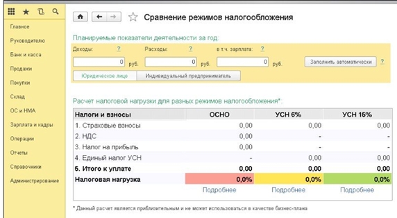 Помощник 1С для выбора режима налогообложения