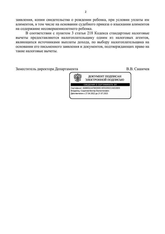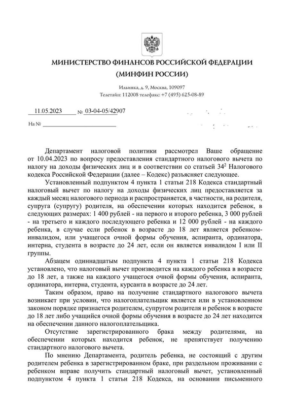 Ведомство также напомнило, что указанный вычет предоставляют за каждый месяц налогового периода. Он распространяется на обоих родителей, на обеспечении которых находится ребенок.