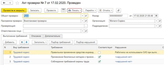 Чек-листы с требованиями уже будут перенесены из программного продукта в приложение, а сформированные акты проверок и предписания можно автоматически выгрузить обратно в программу. Приложение может работать как в режиме синхронизации с программным продуктом, так и автономно. И в том и другом случае составить и распечатать акт проверки можно непосредственно на месте проведения аудита. Таким образом, будет исключен двойной ввод данных о проверках, что позволит сэкономить драгоценное время специалистов.