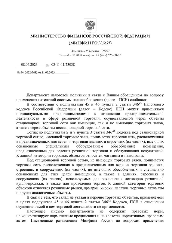 В связи с тем, что склад не указан в перечне торговых объектов, применяемом в целях подпунктов 45 и 46 пункта 2 статьи 346.43 НК РФ, ПСН в отношении осуществляемой в нем торговой деятельности не применяется.