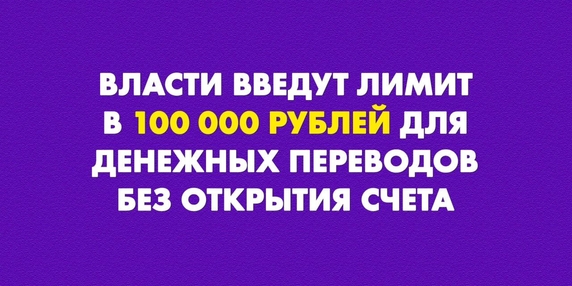 Власти введут лимит в 100 000 рублей для денежных переводов без открытия счета