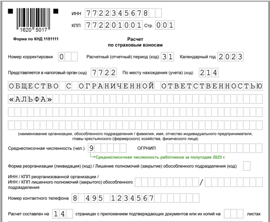 | Среднесписочная численность работников за полугодие 2023 г., рассчитанную в обычном порядке | Дробное значение округлите до целого |