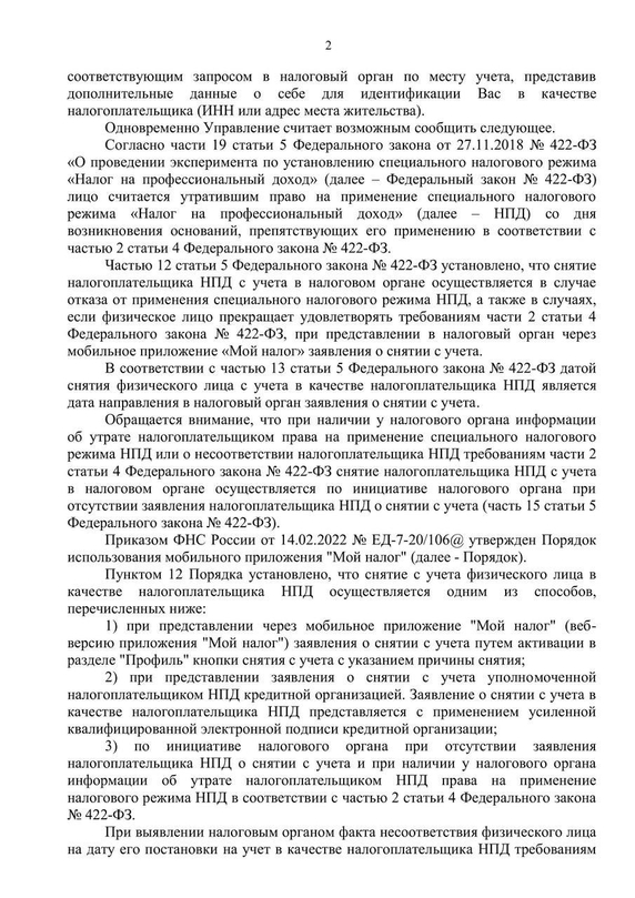 ФНС России в Письме от 06.07.2023г. № 20-21/074680@ дала разъяснения, связанные с утратой права на применение НПД.