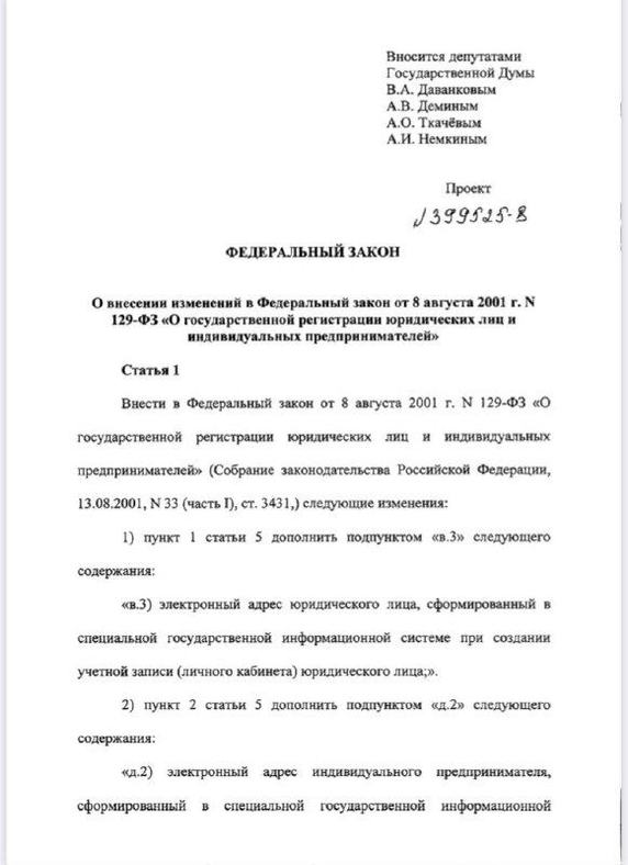 В Госдуму РФ внесён законопроект о введении понятия электронного юридического адреса