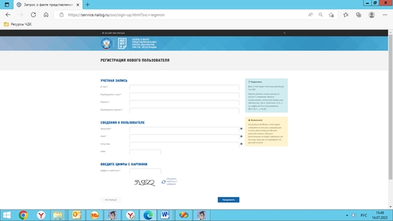 Далее Вы попадете непосредственно на страницу регистрации, где нужно заполнить все обязательные поля. Не обязательны к заполнению только отчество и ИНН.