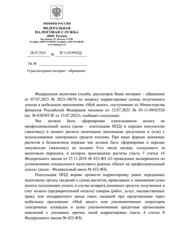Исправление ошибки в сумме в приложении «Мой налог»: ФНС России разъясняет