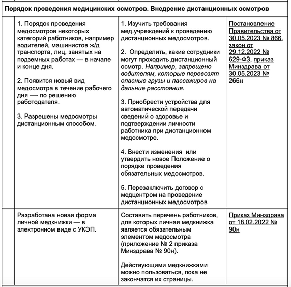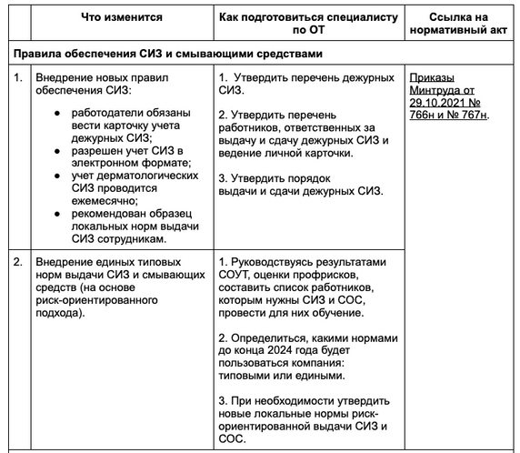 Сводная таблица изменений по охране труда с 1 сентября 2023 года