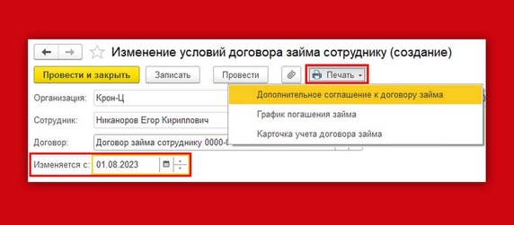 Новые возможности «1С:ЗУП»: изменение условий договора займа сотруднику