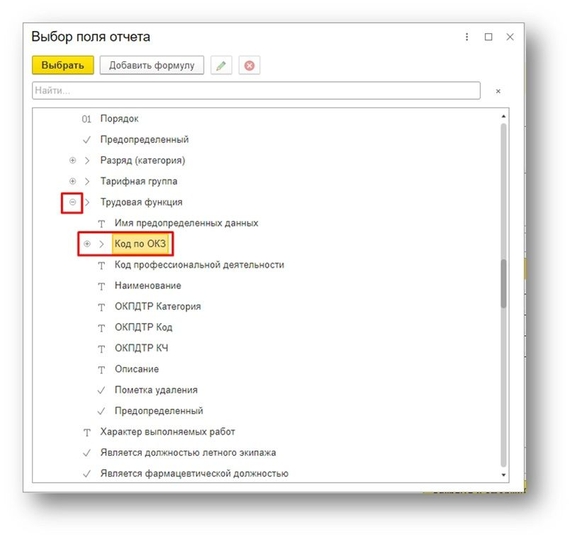 Здесь нас интересует папка Трудовая функция – и двумя кликами выбираем Код по ОКЗ.
