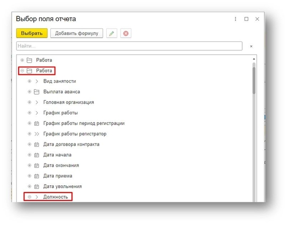 Здесь, по кнопке Добавить необходимо перейти в папку Работа (вторая папка «Работа»). Далее раскрываем папку Должность.