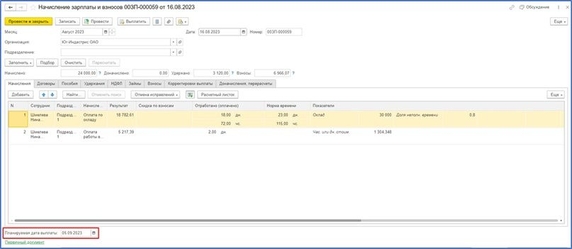 - Обращайте внимание на планируемую дату выплаты в документах начислений:
